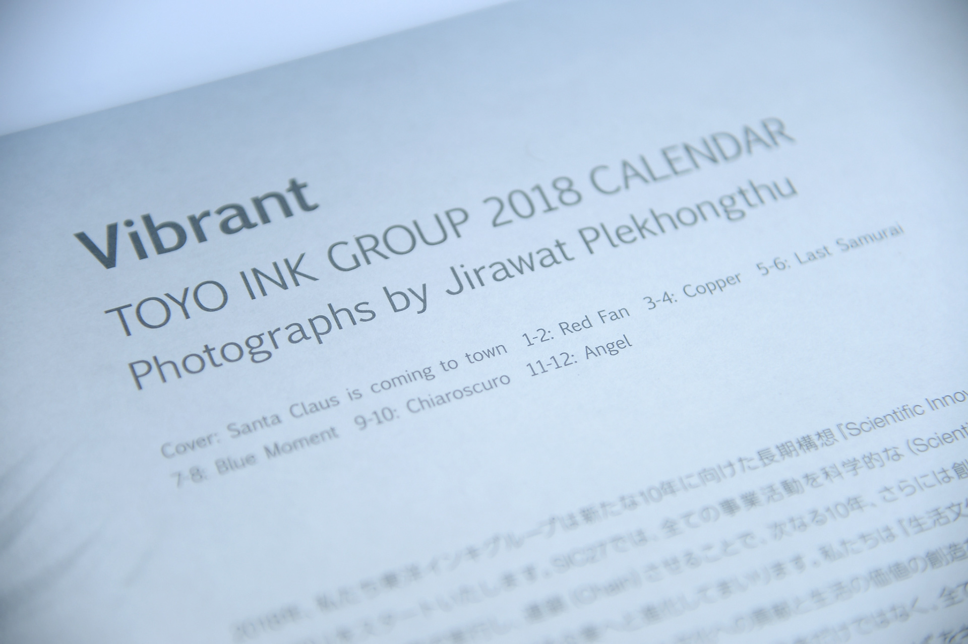 "Vibrant" TOYO INK GROUP 2018 CALENDAR Art Direction: Masahiro Aoyagi Design: Masahiro Ogawa Photographs: Jirawat Plekhongthu